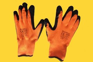 Téli munkáskesztyű mártott, latex – narancssárga/fekete